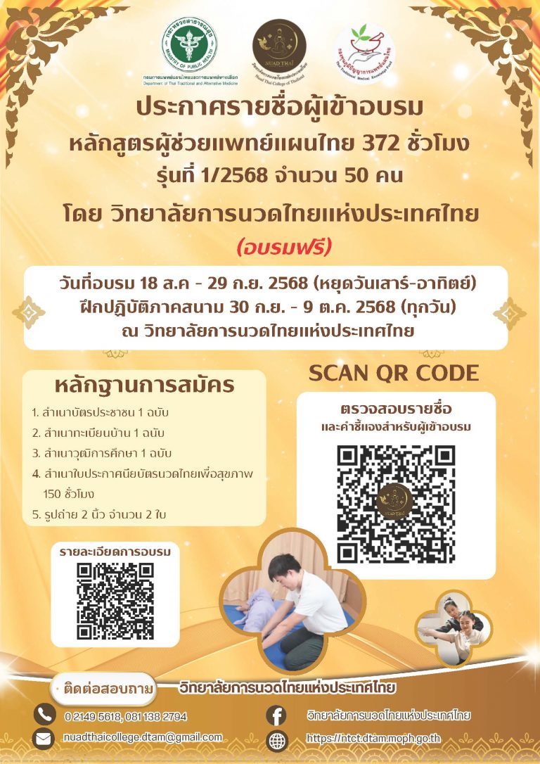 การอบรมหลักสูตรผู้ช่วยแพทย์แผนไทย 372 ชั่วโมง